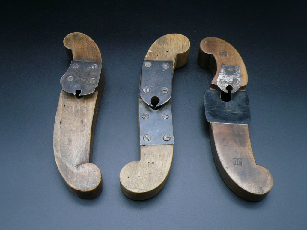 Paires de bouvets à plats, gauche et droite, de carrossier provenant des mines de Suède, situées au 6, rue Lamartine. Il s’agit d’une marque ancienne des MDS, probablement datant de la deuxième moitié du XIXe siècle.